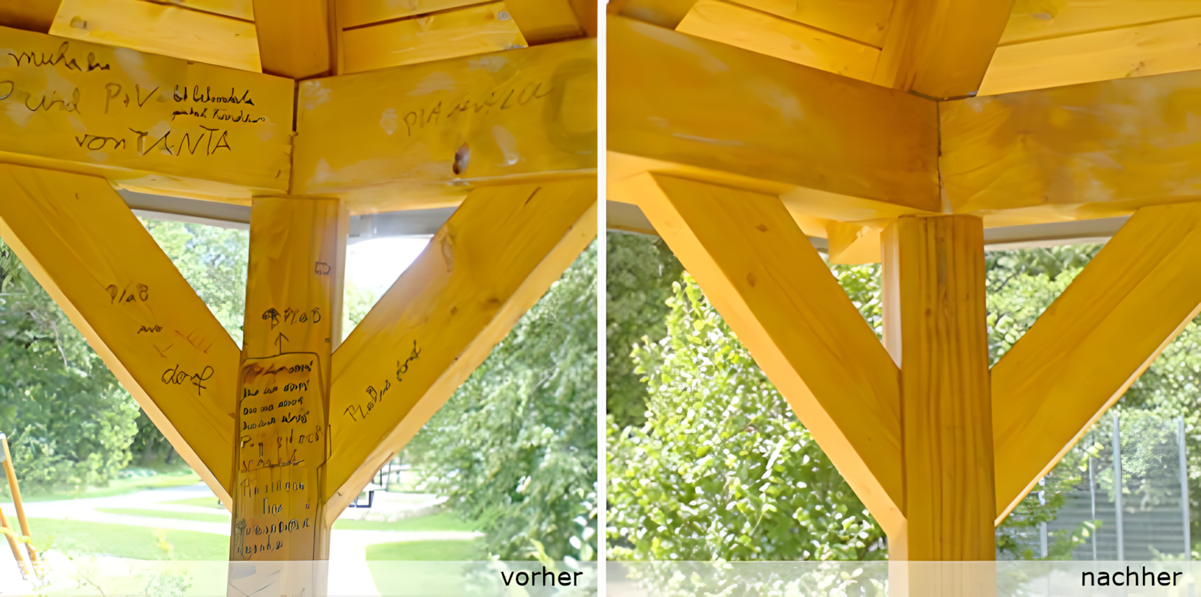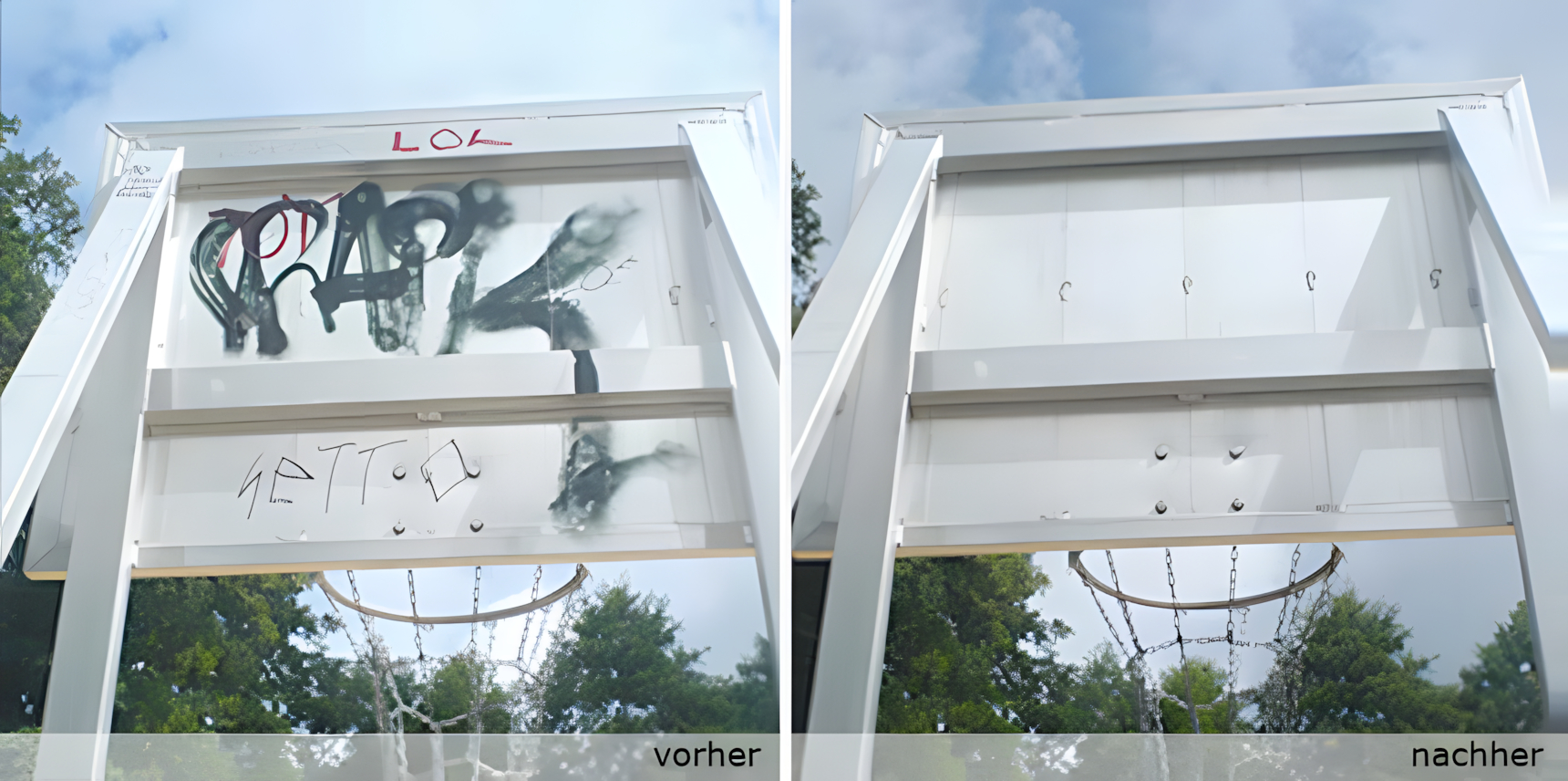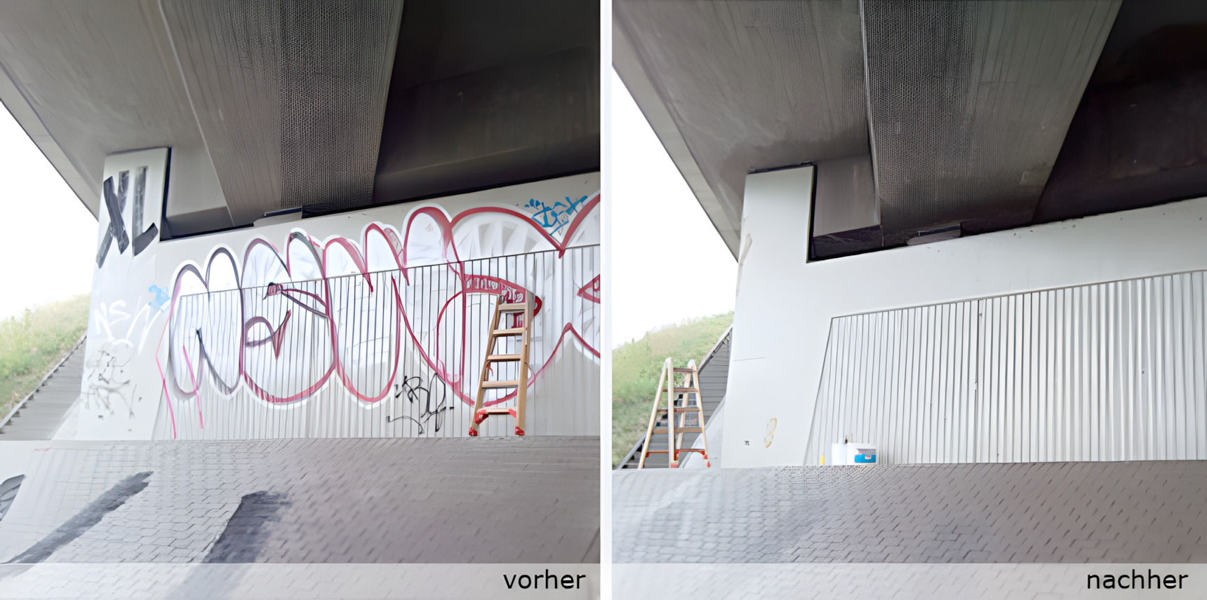 Mittels Hochdrucktechnik entfernen wir schonend hartnäckige Verunreinigungen auf verschiedenen Oberflächen wie z.B. Klinker, Beton, Putz, Naturstein, Fliesen, Holz, Kunststoff und Metall. Der Einsatz einer Hebebühne ermöglicht die Entfernungvon Graffitiy auch an unzugänglichen Stellen.
